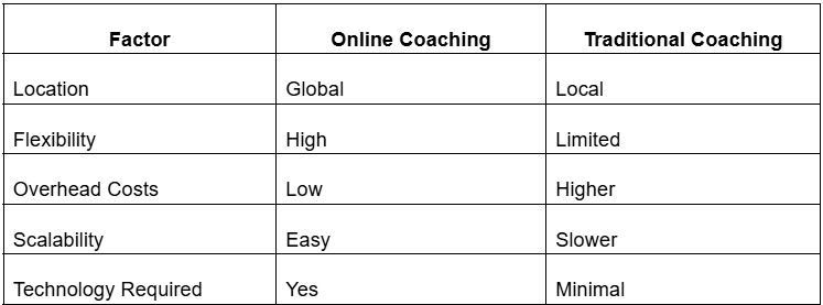 In today's digital-first world, online coaching is often the more scalable and sustainable model.
